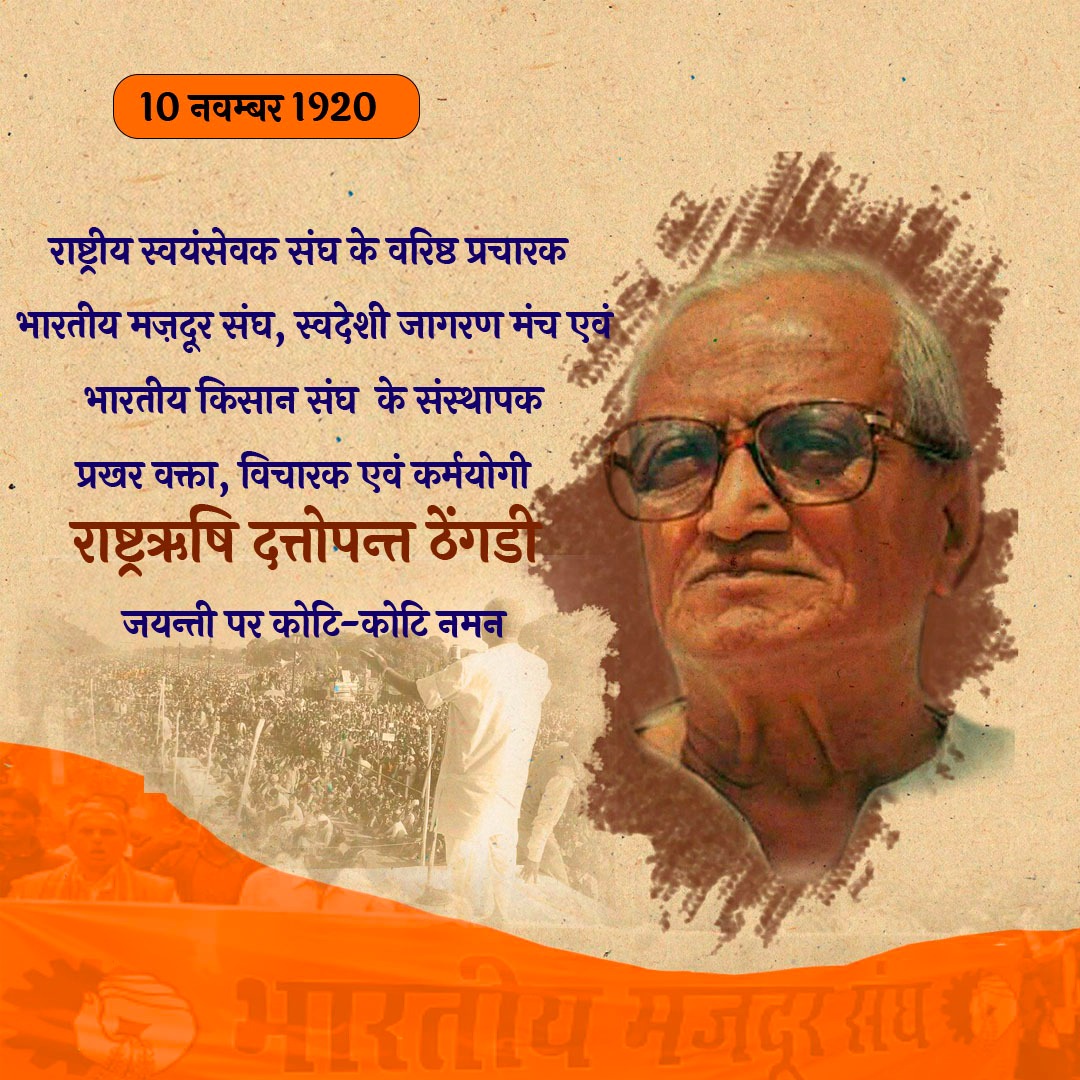 राष्ट्रऋषि दत्तोपन्त ठेंगडी जी की जयन्ती पर कोटि-कोटि नमन
