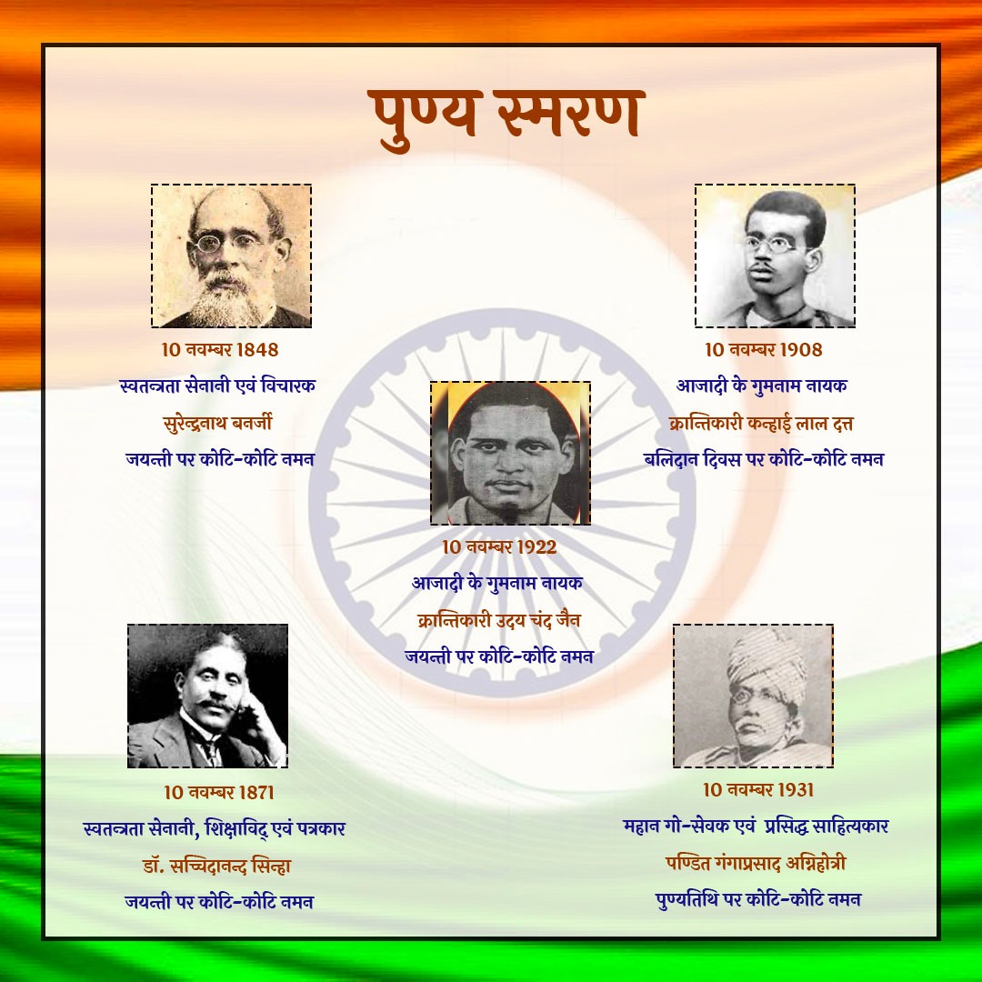 1- दामोदर हरि चापेकर जी 2- पं. विश्वनाथ काशिनाथ राजवाडे जी 3- पंडित ओंकार नाथ ठाकुर जी 4- पंडित श्रद्धाराम शर्मा फिल्लौरी जी आप सभी को कोटि-कोटि नमन