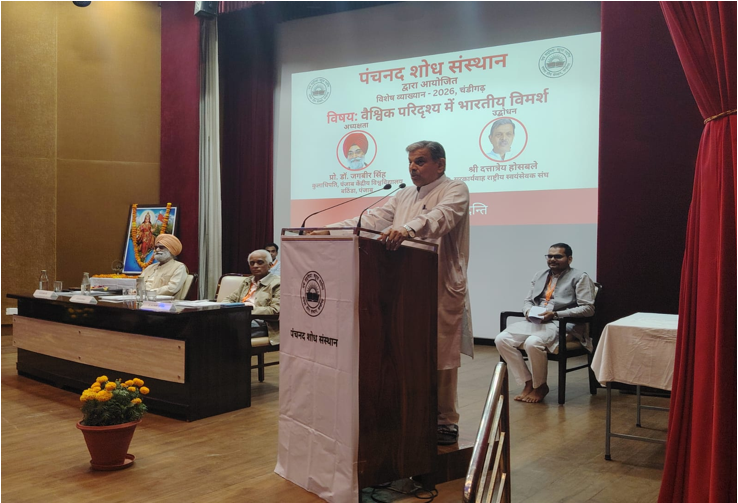 चंडीगढ़। भारतीय चिंतन, संस्कृति और समकालीन वैश्विक परिप्रेक्ष्य पर केंद्रित एक महत्वपूर्ण बौद्धिक संवाद के रूप में पंचनद रिसर्च इंस्टीट्यूट द्वारा 27 मार्च 2026, एन.आई.टी.टी.टी.आर. ऑडिटोरियम, चंडीगढ़ में एक विशेष व्याख्यान का रहा। कार्यक्रम का विषय “वैश्विक परिप्रेक्ष्य में भारतीय विमर्श” था, जो वर्तमान समय में भारतीय विचारधारा की भूमिका और उसके वैश्विक प्रभाव को समझने का एक महत्वपूर्ण प्रयास है।