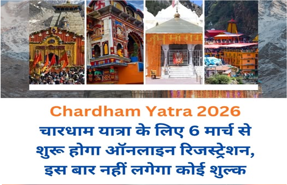 6 मार्च से चारधाम यात्रा के लिए ऑनलाइन रजिस्ट्रेशन शुरू हो रहे हैं। इस बार श्रद्धालुओं से कोई भी शुल्क नहीं लिया जाएगा। यानी बिना किसी अतिरिक्त खर्च के आप इस आध्यात्मिक यात्रा का हिस्सा बन सकते हैं।