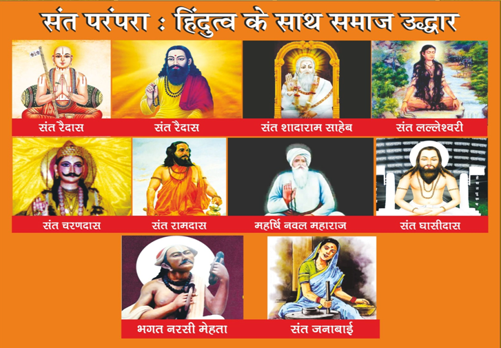 भारतवर्ष की संत परम्परा में अनेक संतों द्वारा सामाजिक-सांस्कृतिक और नवजागरण का महान कार्य हर काल और परिस्थिति में स्वाभाविक परिणति रही है। मनुष्य-मनुष्य में भेद करने वाली मिथ्या दीवारों को संतों ने ही तोड़ा है। संत ही हैं जो समता, बन्धुत्व, प्रेम तथा ईश्वर की सत्ता का प्रतिपादन करते हैं। ये साधक हैं, सुधारक हैं और स्वभाव से संत हैं। किन्तु समझौतावादी और पलायनवादी नहीं हैं। वह सदैव हिन्दुत्व के मूलस्वर को ही बार-बार मुखरित करते रहे हैं तथा अभ्युदय के साथ सर्व कल्याण ही उनकी कामना रही है। यह लेख श्री कृष्ण गोपाल जी, सह सरकार्यवाह, राष्ट्रीय स्वयंसेवक संघ की पुस्तक भारत की संत परम्परा और सामाजिक समरसता से लिया गया है।