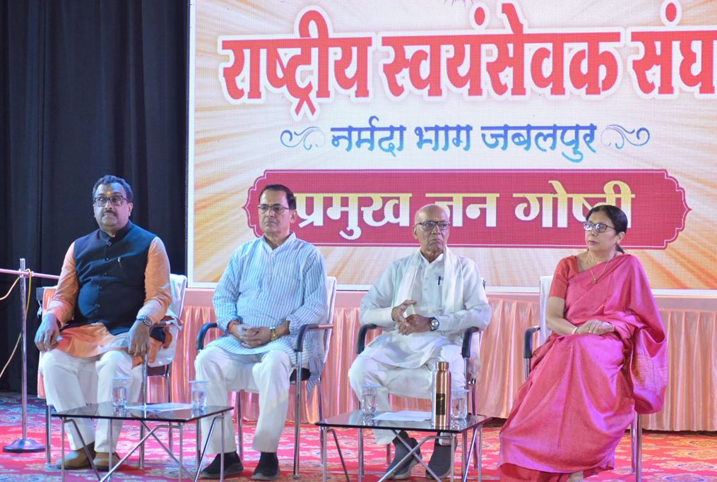 संघ शताब्दी वर्ष के निमित्त नर्मदा भाग में प्रमुख जन गोष्ठी का आयोजन किया गया। गोष्ठी का शुभारम्भ भारत माता के चित्र के समक्ष दीप प्रज्ज्वलन एवं पुष्पार्चन से हुआ। तत्पश्चात राष्ट्रगीत “वंदे मातरम्” का सामूहिक गायन हुआ।