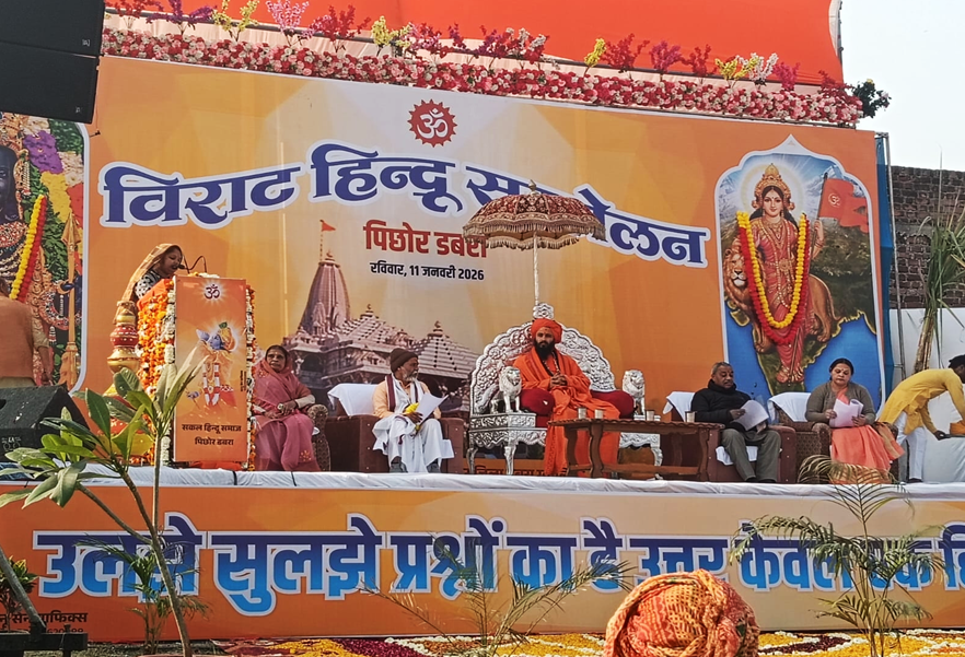 संघ शताब्दी वर्ष के निमित्त डबरा के पिछोर स्थित कृषि उपज मंडी, कल्याणपुर तिराहा पर आयोजित विराट हिन्दू सम्मेलन में मुख्य वक्ता राष्ट्रीय स्वयंसेवक संघ के सह सरकार्यवाह रामदत्त चक्रधर जी ने कहा कि संघ पंच परिवर्तन के संकल्प के साथ समाज में सकारात्मक बदलाव की दिशा में कार्य कर रहा है। सामाजिक समरसता, पर्यावरण संरक्षण, स्व बोध, नागरिक शिष्टाचार और कुटुंब प्रबोधन जैसे विषयों के माध्यम से समाज को जागरूक और संगठित करने के लिए देशभर में विविध कार्यक्रम आयोजित किए जा रहे हैं। कार्यक्रम के मुख्य अतिथि धूमेश्वर धाम भितरवार के महामंडलेश्वर स्वामी अनिरुद्धवन महाराज जी रहे, जबकि विशेष अतिथि के रूप में कृष्णा रावत जी उपस्थित थीं।