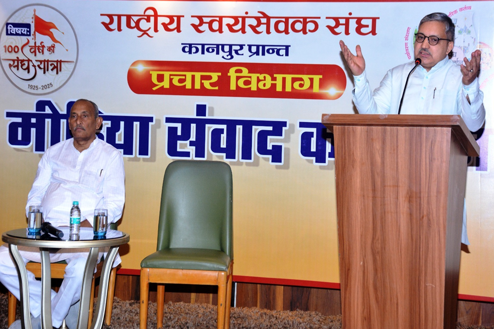 राष्ट्रीय स्वयंसेवक संघ, कानपुर प्रान्त द्वारा बेनाझाबर में मीडिया संवाद का आयोजन किया गया। संवाद कार्यक्रम में राष्ट्रीय स्वयंसेवक संघ के अखिल भारतीय सह प्रचार प्रमुख नरेन्द्र ठाकुर जी ने कहा कि संघ शताब्दी वर्ष में विविध प्रकार के कार्यक्रमों का आयोजन किया जा रहा है। यह क्रम विजयादशमी 2025 से प्रारंभ हुआ था। इसके बाद पथ संचलन, व्यापक गृह संपर्क व हिन्दू सम्मेलन पूरे देश में हुए।