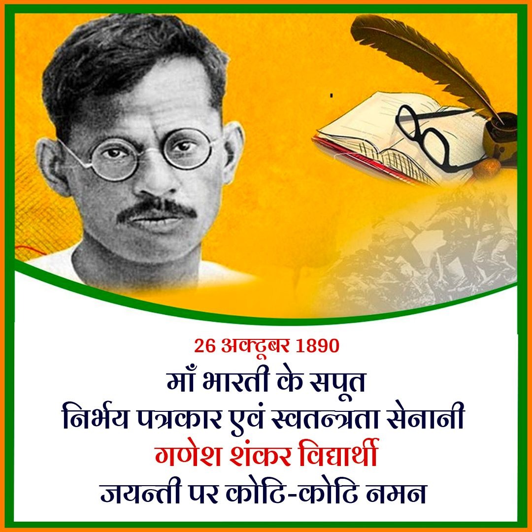 निर्भय पत्रकार एवं स्वतन्त्रता सेनानी गणेश शंकर विद्यार्थी जी की जयन्ती पर कोटि-कोटि नमन