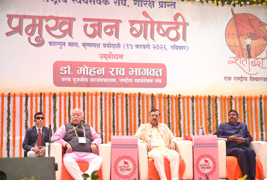 संघ शताब्दी वर्ष के निमित्त राष्ट्रीय स्वयंसेवक संघ गोरक्ष प्रांत की ओर से तारामंडल स्थित बाबा गम्भीरनाथ प्रेक्षागृह में आयोजित प्रमुख जन गोष्ठी में राष्ट्रीय स्वयंसेवक संघ के सरसंघचालक डॉ. मोहन भागवत जी ने कहा कि संघ की दृष्टि पूर्णतया भारतीय चिंतन पद्धति से ही विकसित हुई है। आज समाज में संघ से अपेक्षाएँ बढ़ी हैं। विश्व के पास ऐसा कोई तरीका नहीं है जो समाज को सुख और शांति दे सके। इसलिए वह भी हमारी तरफ आशा भरी नजरों से देख रहा है। उन्होंने कहा कि भारतवर्ष में पाश्चात्य चिंतन का प्रभाव पड़ने लगा था, जिसने भारतीय ज्ञान परम्परा को खण्डित करने का प्रयत्न किया और अपने चिंतन को स्थापित करने का प्रयास किया। किन्तु उनकी चिंतन पद्धति अधूरी थी। भारतीय ज्ञान परम्परा पर आधारित हमारी चिंतन पद्धति ही समाज में उत्पन्न शंकाओं का समाधान कर सकती है। इसलिए संघ शताब्दी वर्ष में हमने समाज तक जाने का निर्णय लिया।