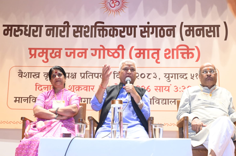 मरुधरा नारी सशक्तिकरण संगठन (मनसा), जयपुर महानगर की ओर से शुक्रवार को राजस्थान विश्वविद्यालय के मानविकी सभागार में आयोजित “प्रमुख जन गोष्ठी” में उन्होंने कहा कि ईश्वर ने नारी को पुरुष की तुलना में अधिक गुण देकर भेजा है। जिस काम को नारी संभालती हैं, वह उसे गंभीरता, चिंता और समर्पण के साथ पूरा करती है। इस कारण उस कार्य की सफलता की संभावना भी अधिक होती है। रामलाल जी ने कहा कि संघ प्रेरणा से चल रहे कार्यों में महिलाओं की बड़ी संख्या मे भागीदारी रहती है।